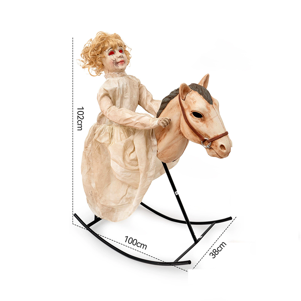 Electric Animatronic Little Girl on Rocking Horse – Haunted House, Escape Room & Bar Halloween Decoration Prop