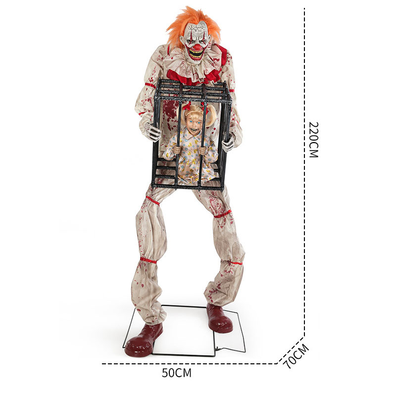 Large Motion-Activated Clown with Cage – Electric Halloween Animatronic Prop for Haunted House Decor